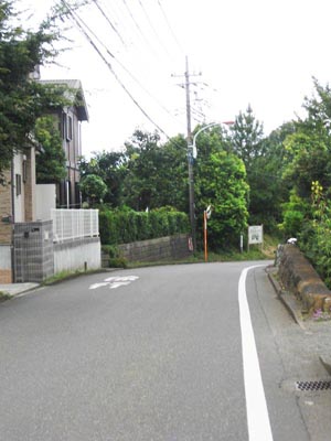 目印  門沢橋方面から旧大山道を東に進むと,本郷の居合橋に着く。ここから東に向かって200メートル余りのだらだら坂。