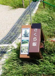 標識  坂下に「さくら坂」と書かれた私設の標識がある。