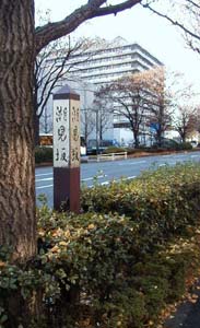 由来 他  中世までは,日比谷公園のあたりが入江であった。眼下に海をのぞむことができる坂ということで この名がついた。(標識より)
