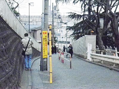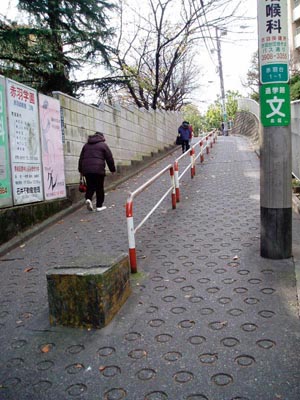 目印  JR赤羽駅の西口を出て,線路沿いに200メートルほど北に進み,モスバーガの手前を左に入ると,赤羽台団地に上る狭い道がある。ここが 大坂。赤羽幼稚園の北側の道。